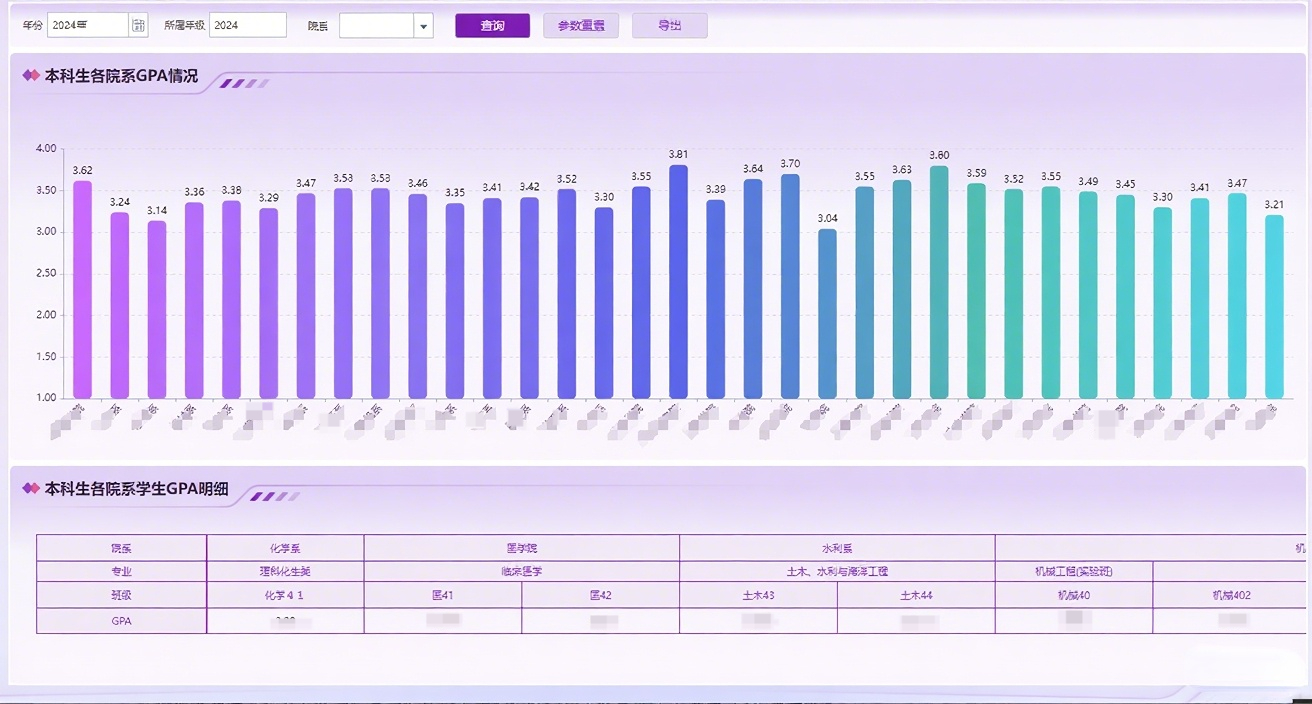 场景二:本科生各院系GPA看板——数据画像展示学生成长