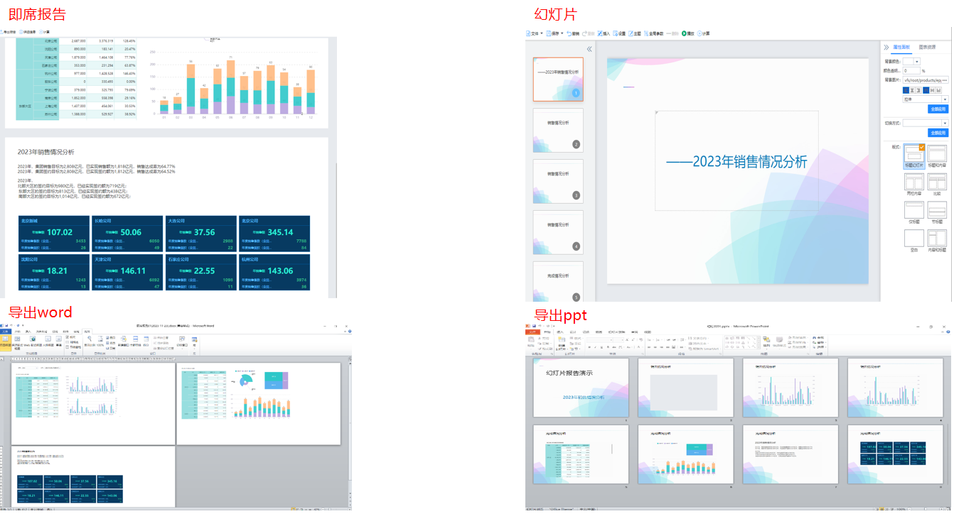 引入亿信华辰BI工具支持WORD/PPT/网页即席报告的“傻瓜式”制作,报告模板复用率提升70%,单份报告开发时间从3天缩短至3小时。