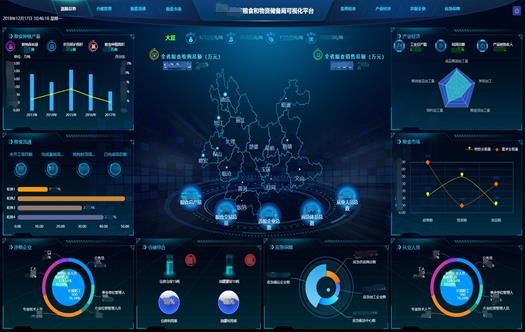 某股份助力某省粮食局,为了解决上报数据来源的真实和规范性、实现县级-市级-省级的分级管理,领导统一驾驶舱的全局掌控,基于亿信BI分析工具、酷屏与i@Report采集工具建设粮食和物资储备可视化平台,实现粮食大数据可视化趋势分析。