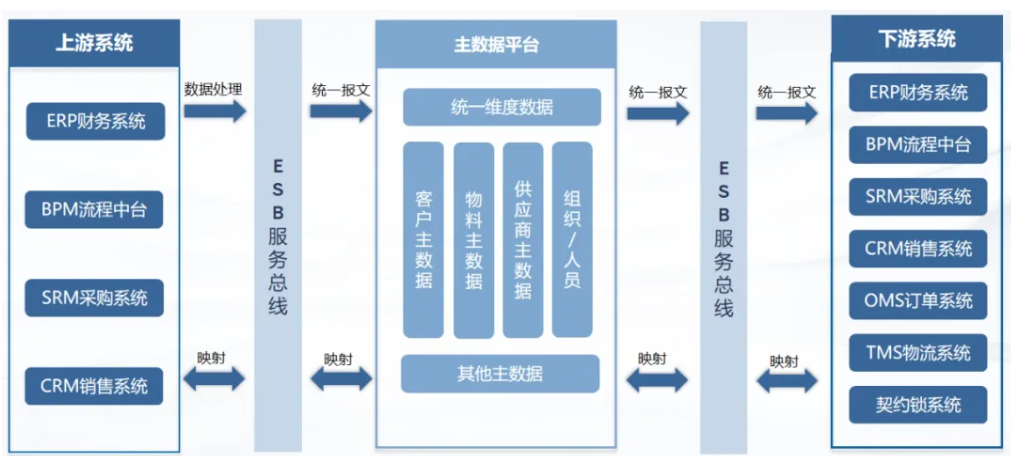 原有的主数据管理依赖金蝶EAS系统,其他业务系统如CRM、SRM、TMS 直接调用EAS数据。这导致EAS既承担财务核心业务,又变向成为 “主数据数据库”,实时查询压力大,系统响应速度下降25%,扩展能力受限。