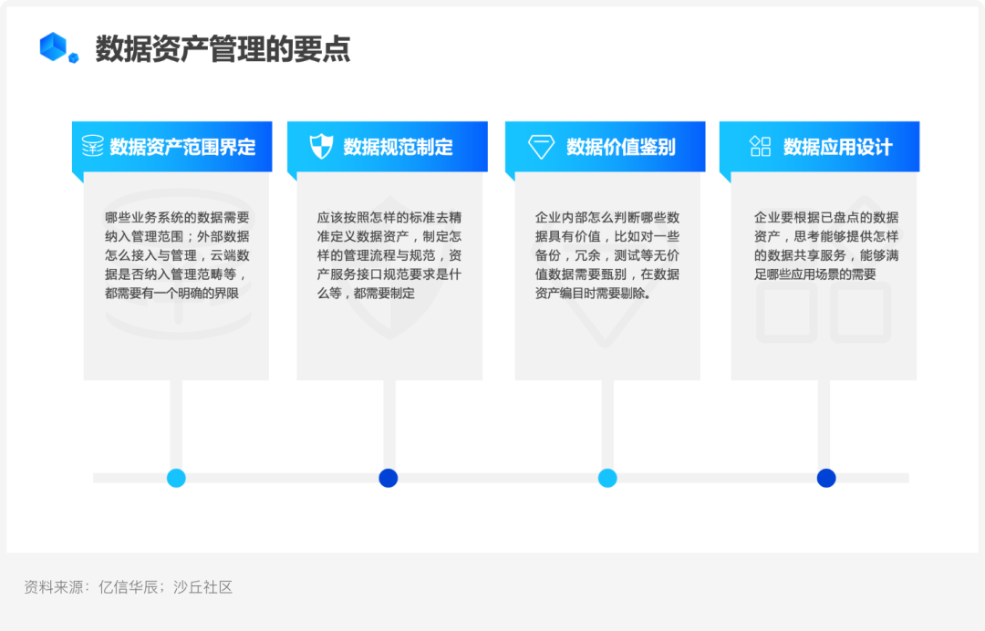 第一,数据资产范围界定。哪些业务系统的数据需要纳入管理范围;、外部数据如何接入与管理、云端数据是否纳入管理范畴等,都需要进行明确界限;
