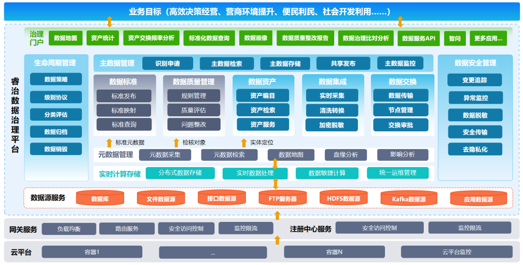 睿治Cloud版本采用云原生架构,它通过对数据从创建到消亡的全过程的监控和治理,实现数据的统一管理,为企业保证了业务数据在采集、集中、转换、存储、应用整个过程中的完整性、准确性、一致性和时效性,从而帮助客户建立起符合自身特征的数据架构和数据治理体系。