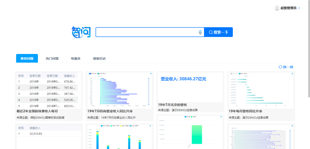 智问使用了人工智能中的自然语言理解、智能检索等技术,支持用对话或者文字输入的方式查询数据、分析数据,使数据分析的门槛真正降为零。