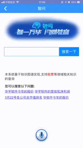 比如对智问说“xx公司的股价”,系统就会自动出一个体现公司股价并匹配数据的趋势图。超级省时省事,而且对初学者来说是极大的福音,没有任何学习的成本,通过说或输入文字的方式,就能获取数据图表。