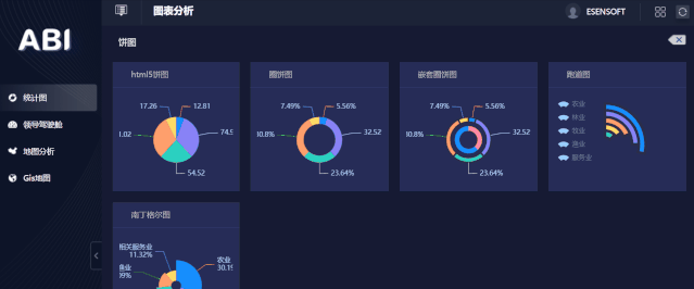 图表分析:亿信ABI支持上百种统计图样式,每款统计图的颜色、样式皆可按照喜好自定义。用它实现领导驾驶舱,可以自定义使用报表模板拥有的所有的数据展现形式,如:地图、表格、富文本、绘图、统计图等等。