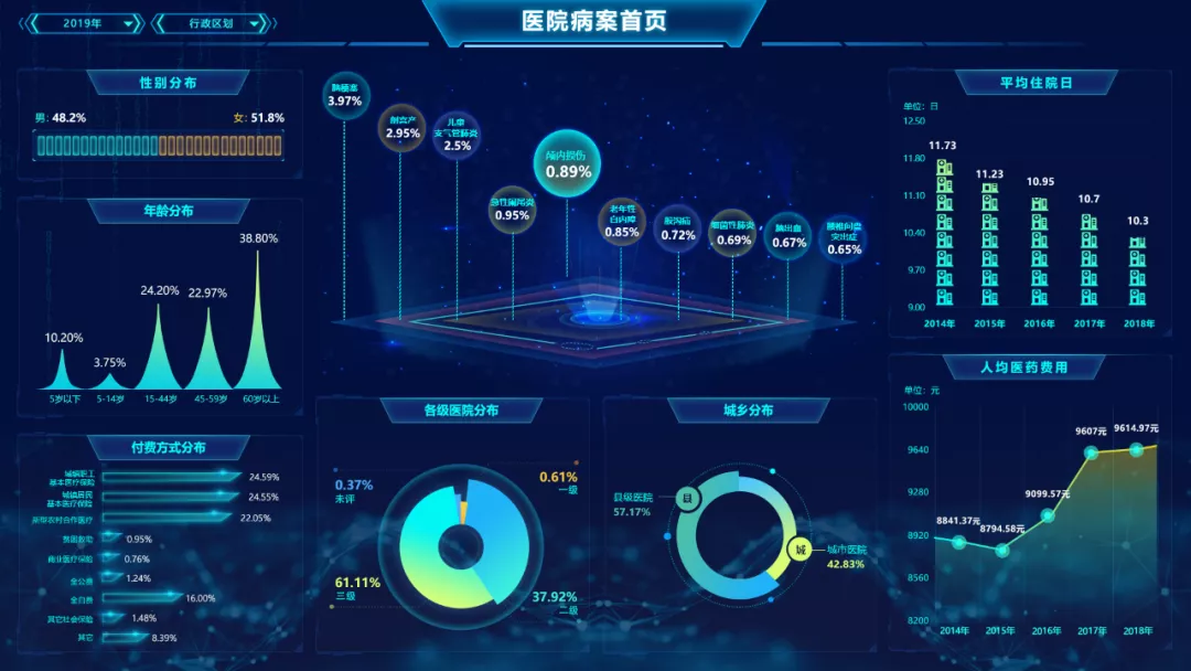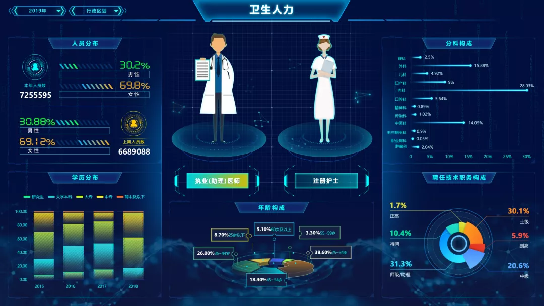 实现卫生资源、医疗服务、疾病控制、卫生监督、妇幼保健、统计年鉴等卫生信息资源的快速查询与分析;构建领导驾驶舱,重点呈现领导关注的“人、财、物”KPI指标,为领导决策提供依据。
