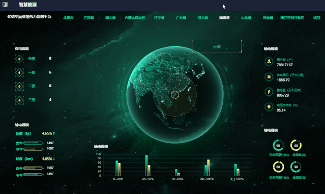 酷屏支持整合电力部门现有信息系统的数据资源,覆盖基建、运检、调度、生产、营销、安监等多个业务领域。针对领导视察、迎检汇报、客户参观等情景,支持灵活构建可视化汇报主题,并可提供多种可视化手段,对电网侧数据、用户侧数据、泛在电力物联网建设应用成果、保电任务、应急处置流程等内容进行动态展示。
