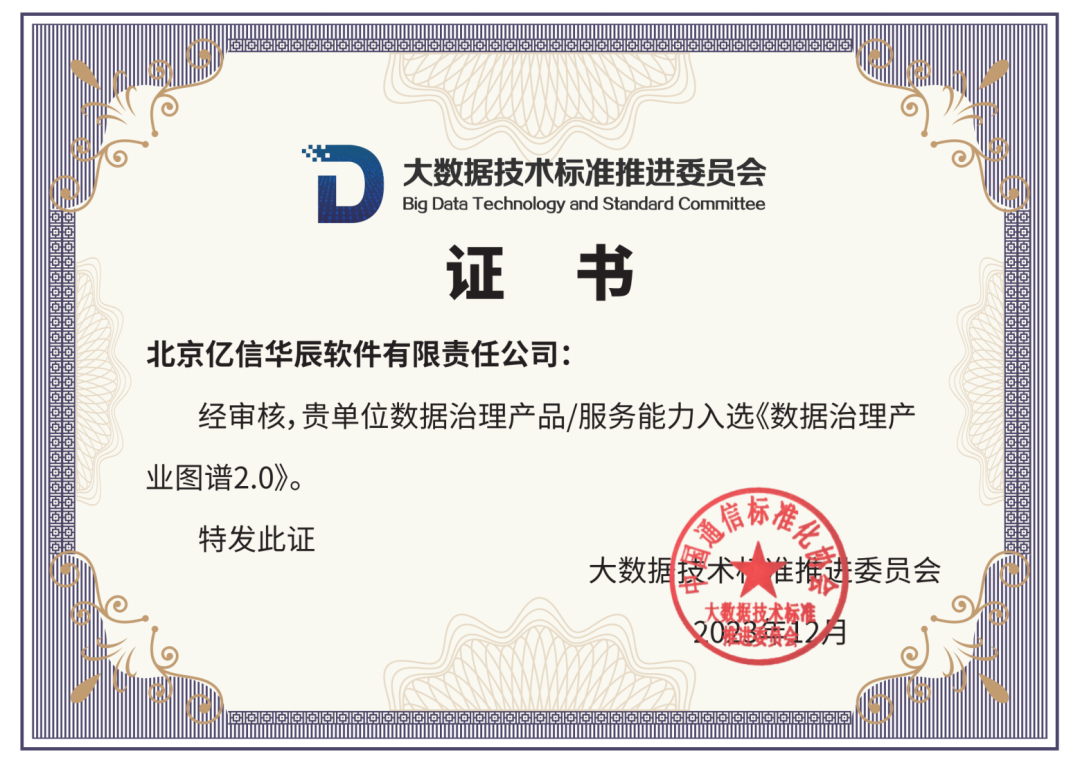 数据治理产业图谱2.0》,亿信华辰凭借在数据要素与治理领域的卓越表现和领先实力,成功入选两大产业图谱,持续领跑大数据行业。这一荣誉不仅是对亿信华辰的认可,更是对其在数据管理领域不断探索和创新的肯定。