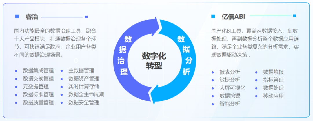 凭借多年的技术积累和服务经验,亿信华辰充分整合资源,为企业夯实数据基础,释放数据要素价值,能够为客户提供从