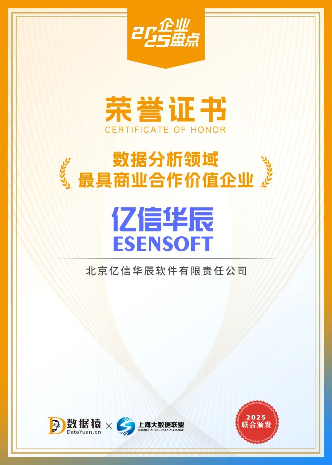荣誉既是认可,更是鞭策。数据猿的评价一语中的:“亿信华辰以其扎实的数据治理功底为数据分析提供‘确定性’。” 这份“确定性”,正是我们在数据价值爆发与AI技术浪潮双重变局下,赋予客户最宝贵的资产。