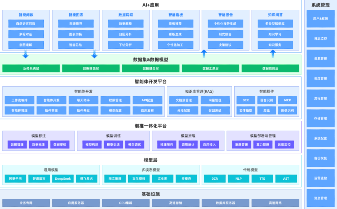 该平台的核心价值在于,它允许企业以低门槛、灵活编排的方式,将经过严格治理的高质量数据与前沿的大型语言模型(LLM)能力深度融合,快速构建面向“问数”(数据查询、分析、可视化)与“问知”(知识检索、洞察归纳、决策建议)的多样化场景智能体。这意味着,业务人员无需深谙技术细节,即可通过自然语言交互,轻松驾驭复杂数据,获得即时、精准的洞察。