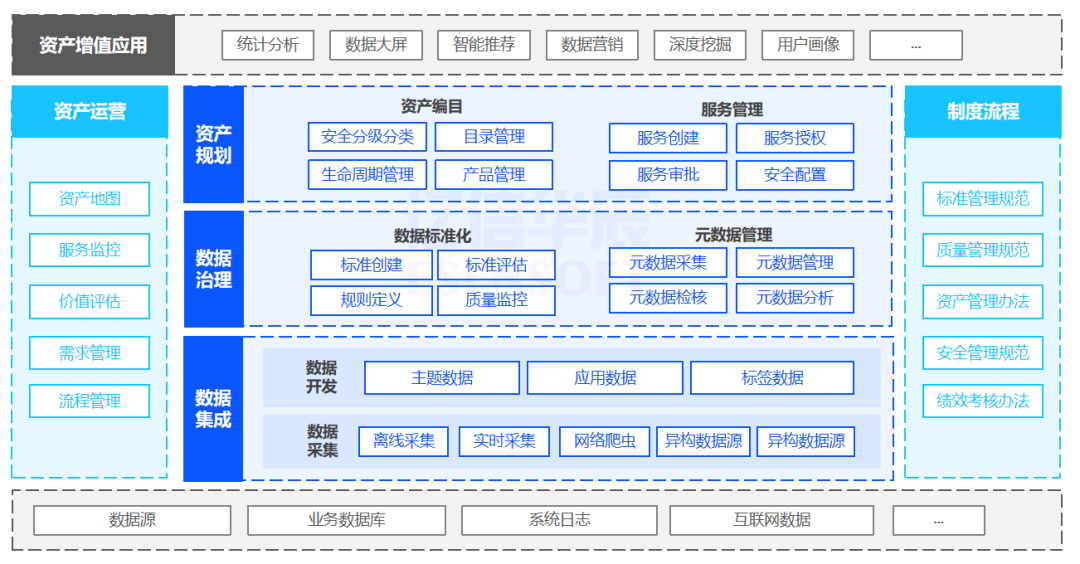 在企业数据资产建设的进程中,必须倚赖一套专业的数据资产管理工具,以实现对数据资产的全流程管理,构建一个统一的数据资产管理平台,确保各个活动职能相关工具之间的协同作业,覆盖数据的采集、流转、加工和使用等各个环节。