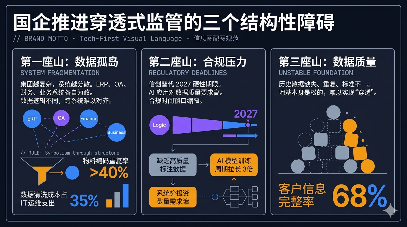 这三座山叠在一起,说明穿透式监管的核心问题,从来不是“要不要做”,而是“数据基础不支撑做”。
